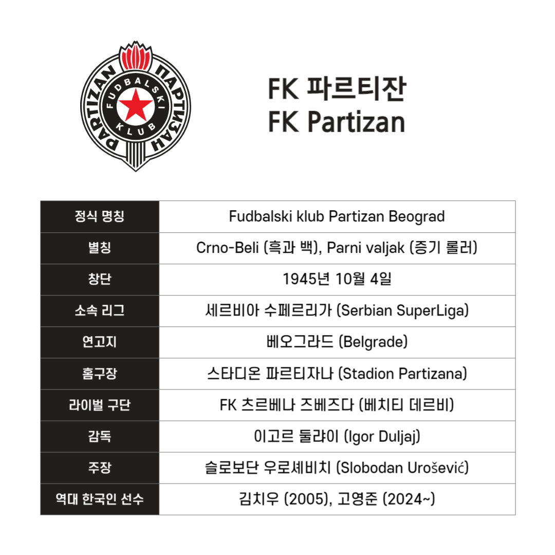 FK 파르티잔은 세르비아의 수도 베오그라드를 연고로 하는 축구 클럽입니다.
