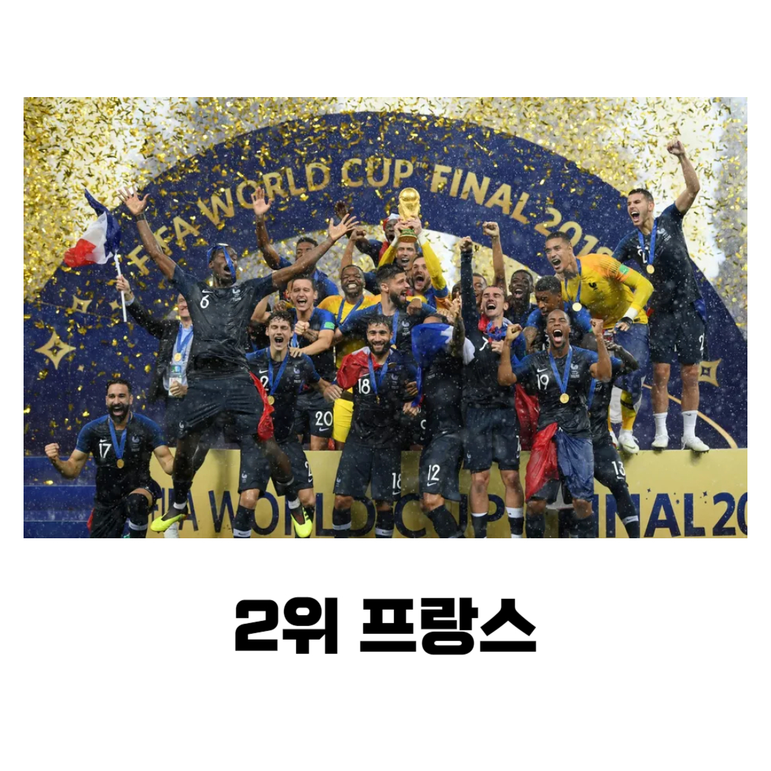 2위는 2018 러시아월드컵 우승국인 프랑스가 차지하였습니다.