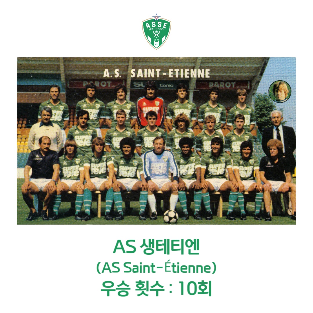 생테티엔은 1957, 1964, 1967, 1968, 1969, 1970, 1974, 1975, 1976, 1981 시즌까지 총 10회 우승을 달성했습니다.
